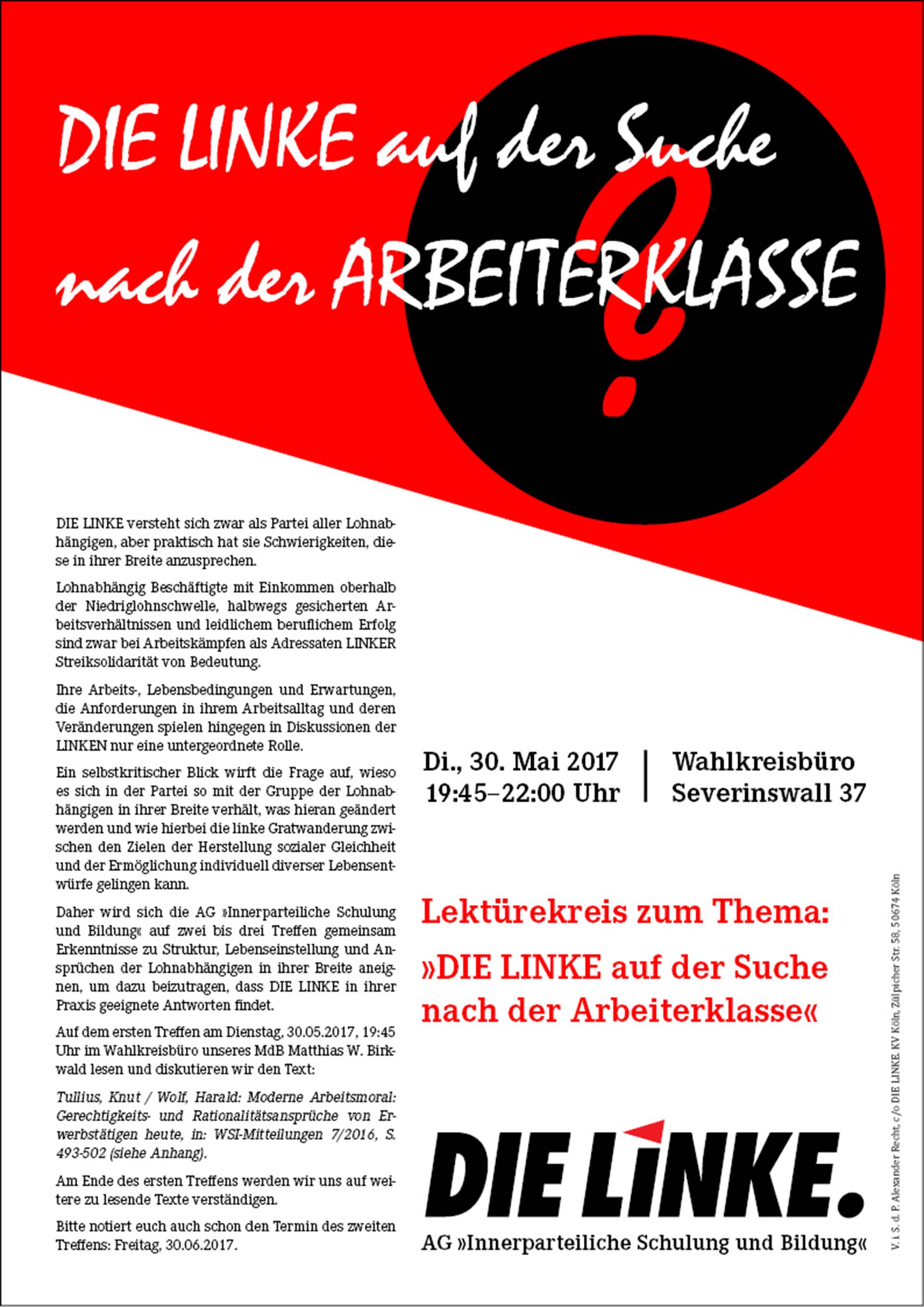 Arbeiterklasse. Die Einladung dazu siehst du weiter unten.