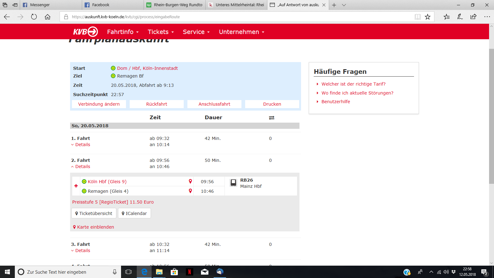 Unser Zug (RB26) fährt um 9:56 ab.