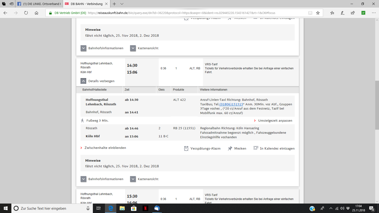 > Da es Winter ist und die Tage kurz sind nehmen wir den RB25, Abfahrt