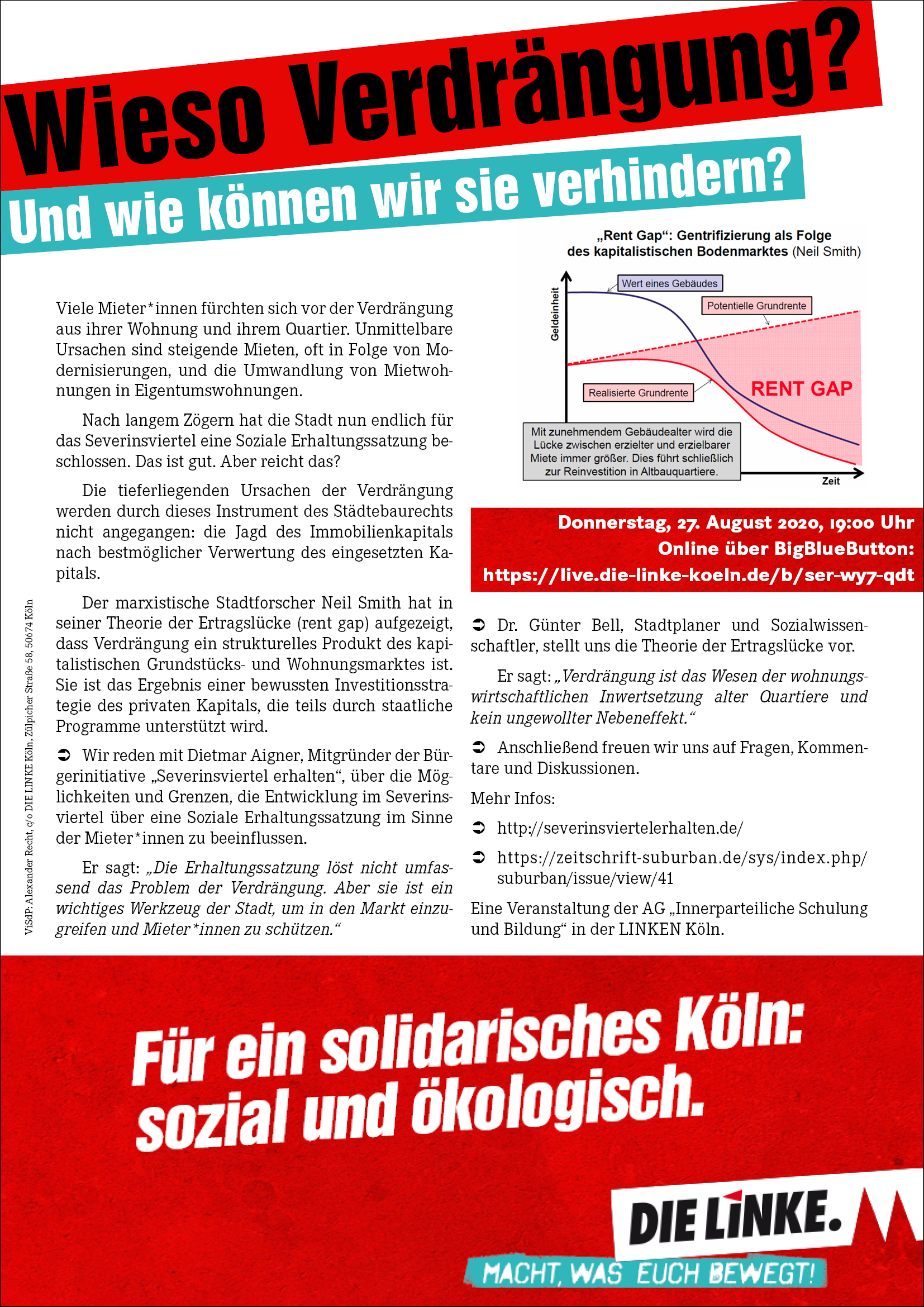 [Aktive Innenstadt] Online-Veranstaltung: Wieso Verdrängung?, 27.08.2020, 19 Uhr, via BigBlueButton (korrigiertes Datum)
