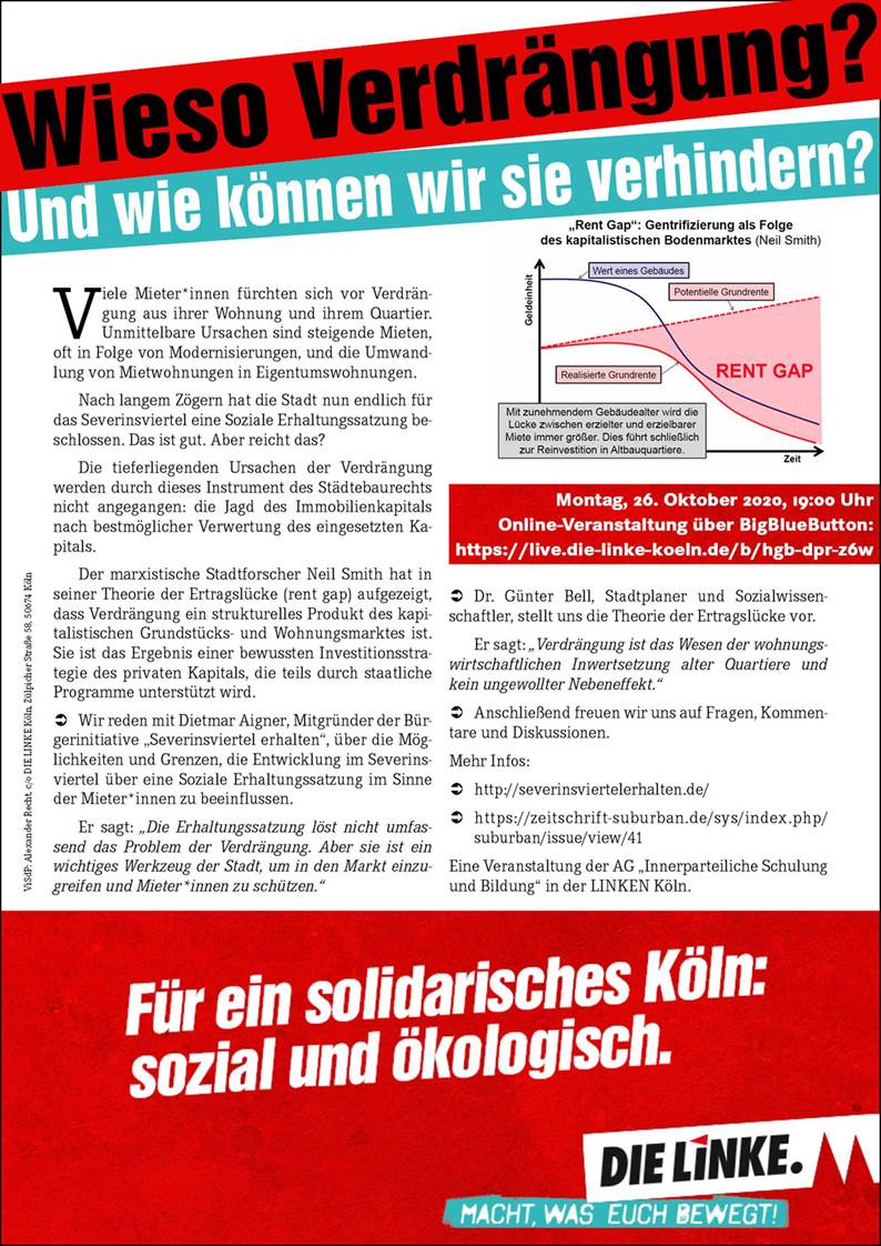 [Aktive Innenstadt] Online-Veranstaltung: Wieso Verdrängung?, Montag, 26.10.2020, 19 Uhr, via BigBlueButton